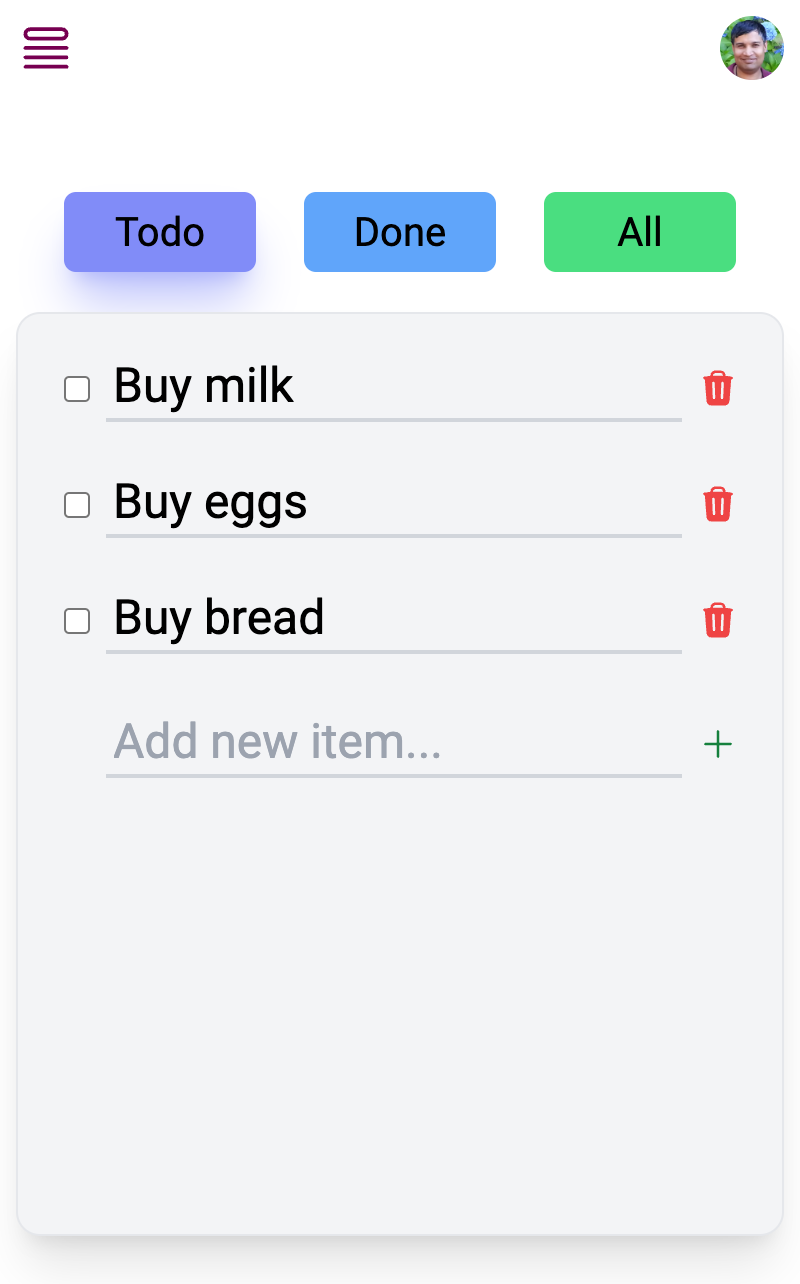 You can sign in as different users and see how the access control rule works (one user will not be able to see or change another user's todos).